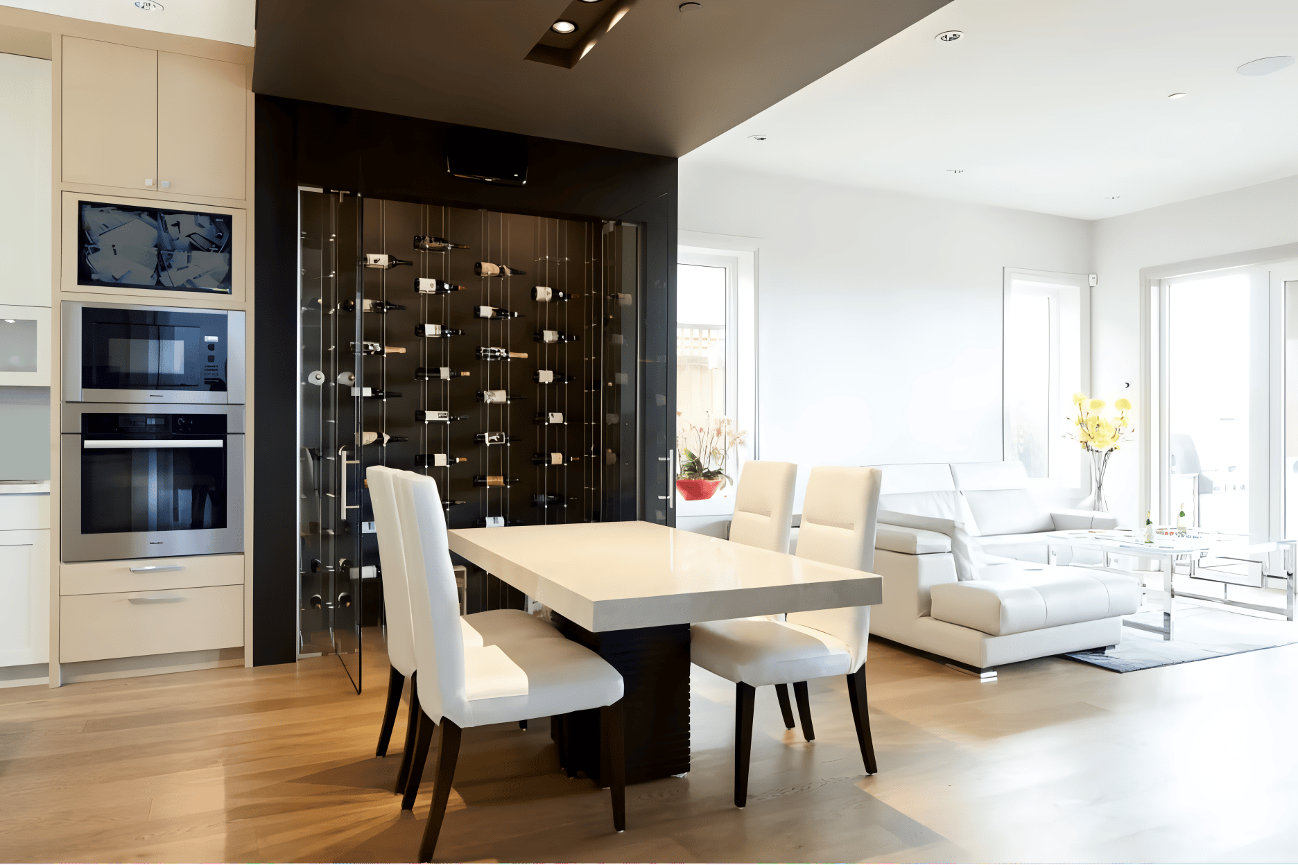 More and more homeowners are coming out of the wine cellar and displaying their wine collections like artwork. It’s a dynamic design idea that immediately adds an element of intrigue to your living or dining space. After all, your wine bottles are a beloved personal collection, so why not display them? It’s also the perfect solution for casual wine drinkers who don’t have extensive collections that require elaborate storage needs. This modern unit features floating cable racks and a through-the-wall cooling system. Offering function and beauty, this ethereal wine wall delivers the best of both worlds.